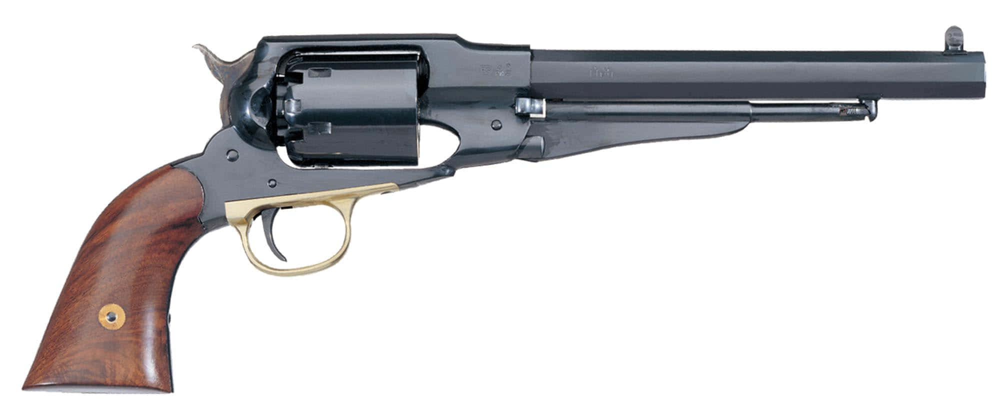 Le Remington 1858 Uberti calibre .44 poudre noire est un revolver emblématique reproduit avec un haut niveau de fidélité. Doté d'une finition bronzée et d'une crosse en noyer, il offre robustesse et authenticité pour les passionnés.