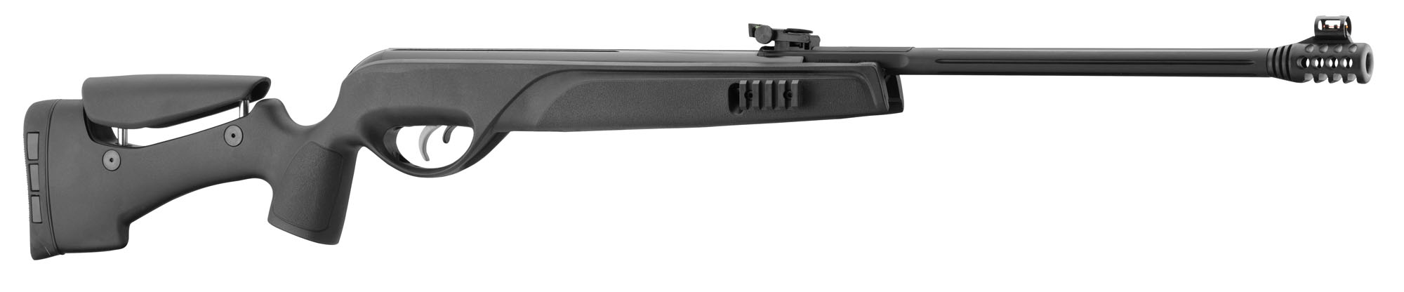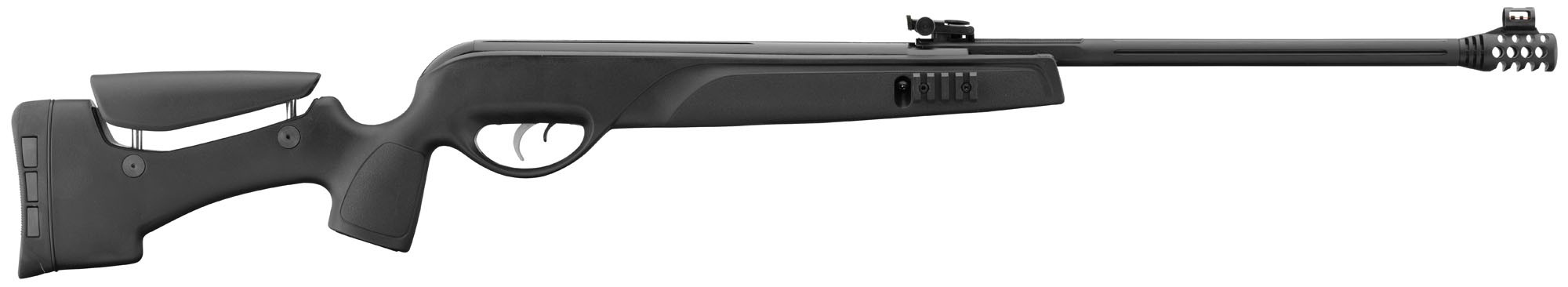 La crosse synthétique intègre un appuie-joue réglable en hauteur, permettant d'adapter la position de tir à chaque utilisateur. Cette modularité améliore le confort et la cohérence de la visée, notamment lors des séances prolongées.
