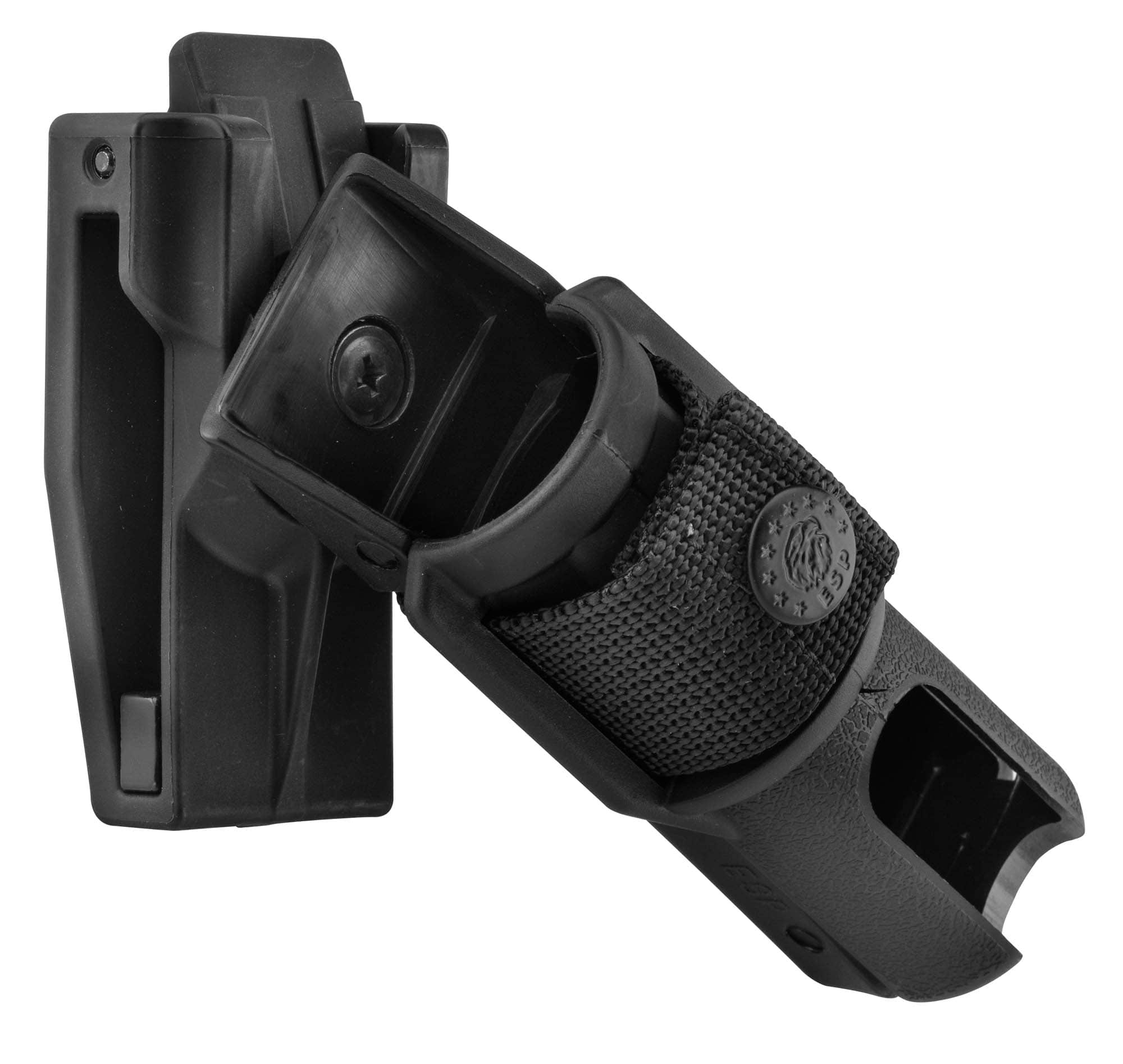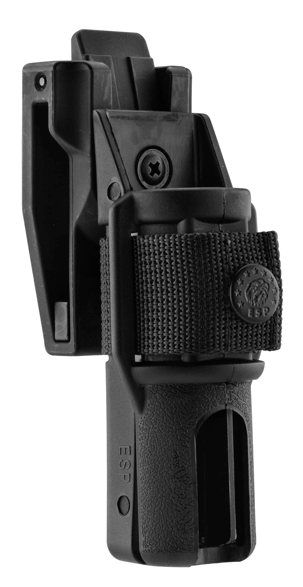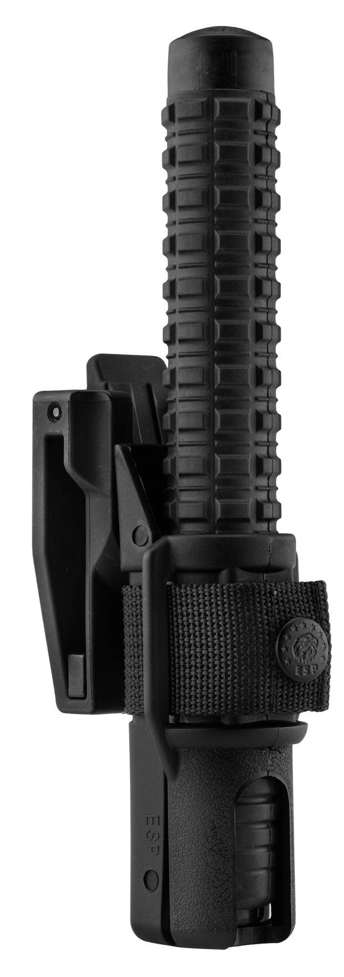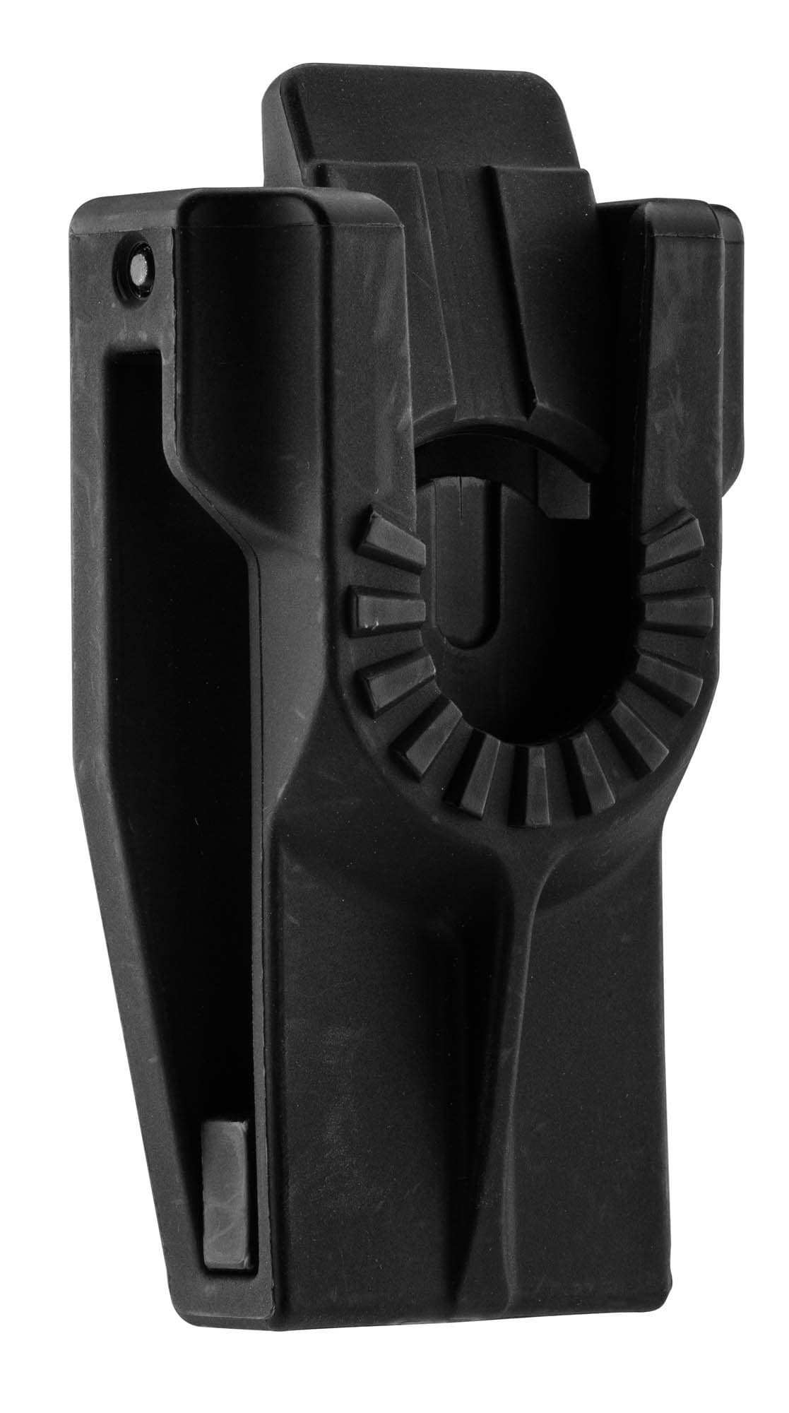 Le porte-matraque rotatif en polymère permet un port à la ceinture avec un accès rapide. Il autorise également le port en position ouverte.