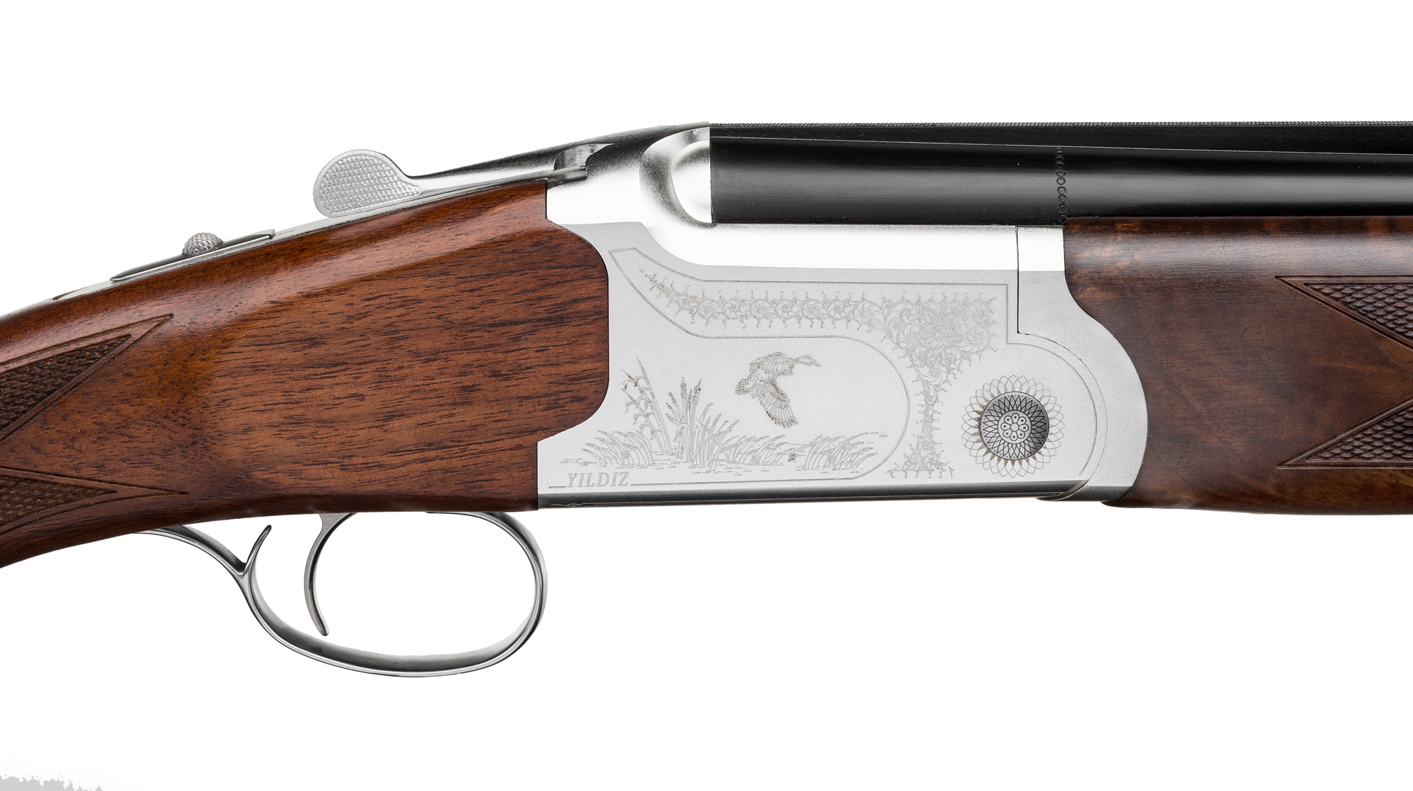 Le Yildiz Plaine Silver Cal.12/76 est un fusil superposé conçu pour la chasse au petit gibier, combinant légèreté, maniabilité et élégance. Disponible en canon de 66 cm ou 71 cm, il s'adapte aux différents terrains et styles de chasse. Sa bascule en alliage léger gravée et ses bois en noyer poncé huilé offrent une finition soignée et agréable en main.