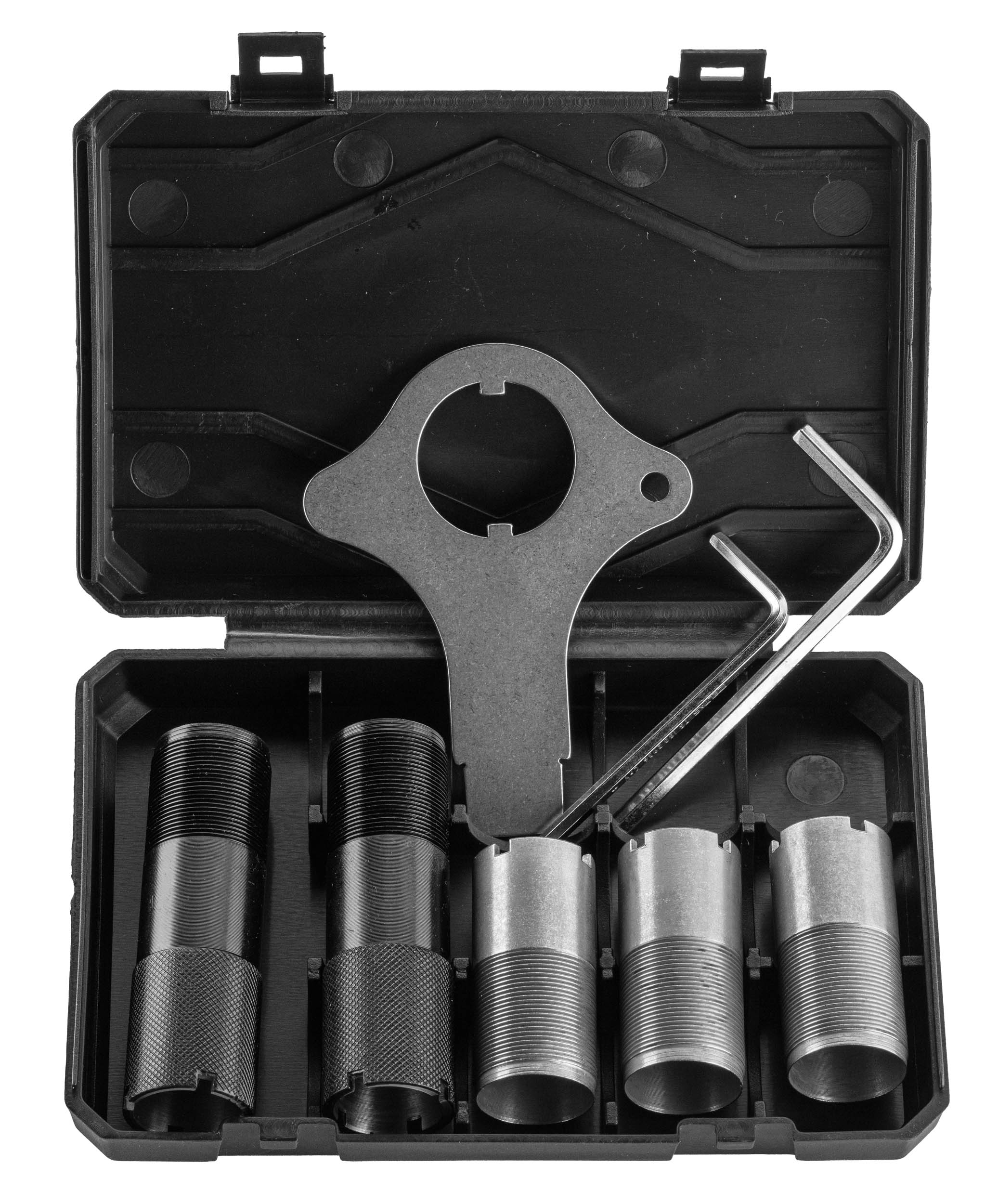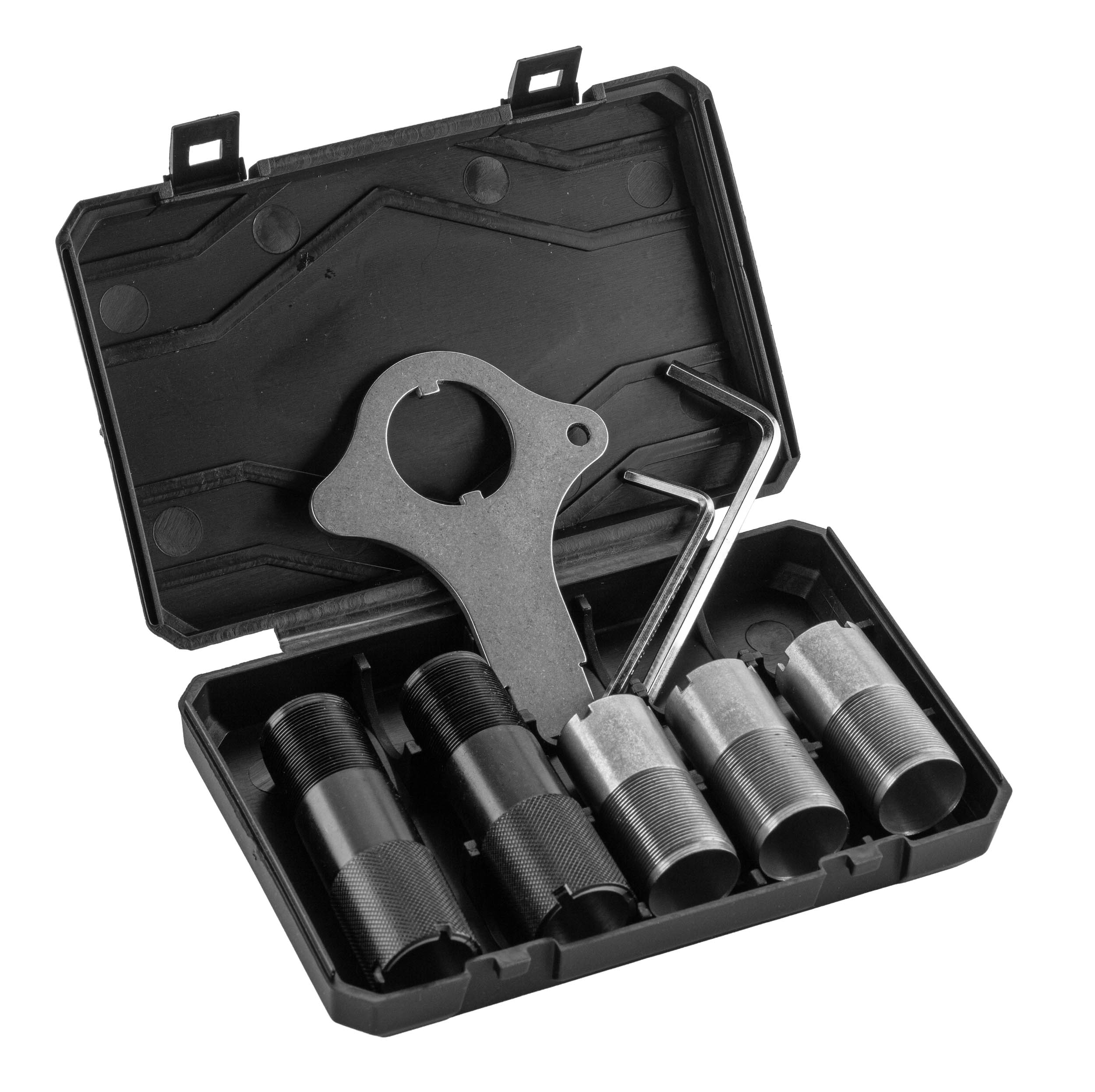 Il est livré avec 5 chokes internes et 2 chokes externes longs, couvrant différentes configurations de tir.